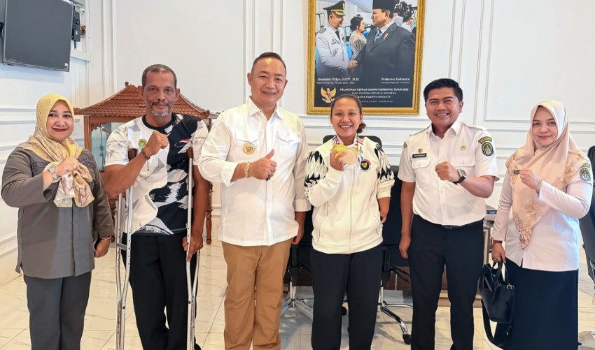 edukasiborneonews- Bupati Ketapang Alexander Wilyo, S.STP.,M.Si menerima audiensi Cici Juliani atlet paralympic Kabupaten Ketapang yang sukses meraih medali emas dan perunggu pada ajang ASEAN Para Games. Pertemuan berlangsung di Pendopo Bupati Ketapang, Rabu (18/2/2026).