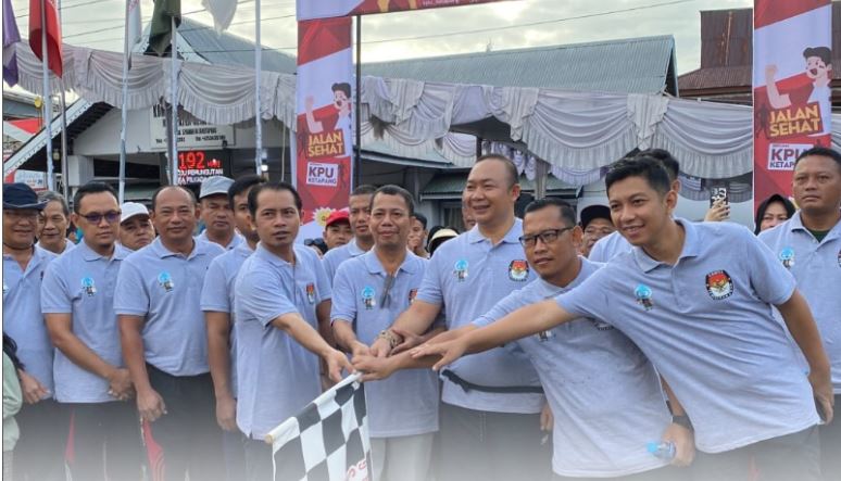 Umum (KPU) Kabupaten Ketapang menggelar Jalan Sehat dengan start dan finish di depan Kantor KPU Kabupaten Ketapang di jalan S. Parman, Minggu (19/05/2024) pagi.
