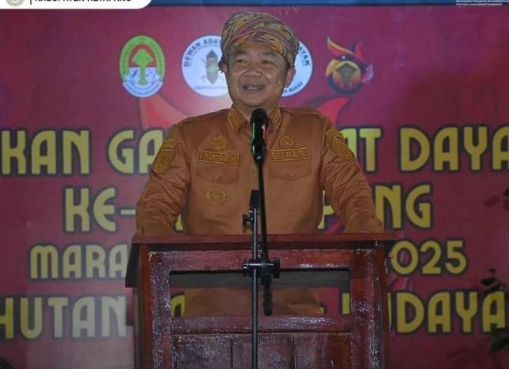Bupati Ketapang, sekaligus Patih Jaga Pati Laman Sembilan Domong Sepuluh Kerajaan Hulu Aik, yang bergelar Randen Cendaga Pintu Bumi Jaga Banua Alexander Wilyo, S. STP., M. Si. membuka secara resmi Pekan Gawai Dayak XI Kabupaten Ketapang di Marau, Selasa (10/6/2025).