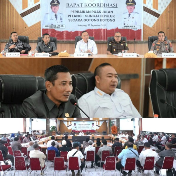edukasiborneonews – Pemerintah Kabupaten Ketapang menggelar rapat koordinasi evaluasi perbaikan ruas jalan Pelang–Sungai Kepuluk secara gotong royong di Ruang Rapat III Kantor Bupati Ketapang, Rabu (10/9/2025) Pertemuan dipimpin langsung oleh Bupati Ketapang Alexander Wilyo, S.STP., M.Si., dan dihadiri Ketua DPRD Ketapang H. Achmad Sholeh, S.T., M.Sos., jajaran Forkopimda, Sekda, serta dinas teknis dan perwakilan perusahaan.