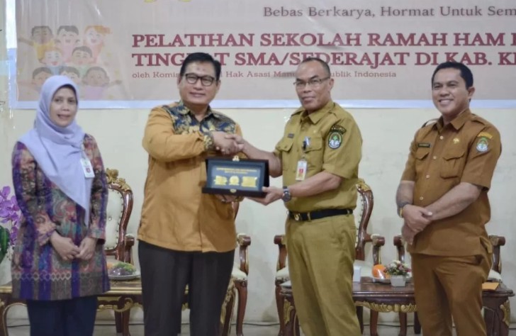 Staf Ahli Bupati Bidang Pemerintahan, Hukum dan Politik, Darma, membuka pelatihan Sekolah Ramah Hak Asasi Manusia (SRHAM) bagi guru tingkat SMA di Ruang Diklat Kantor BKPSDM Ketapang, Selasa (24/6). Pelatihan ini bertujuan untuk mengintegrasikan nilai-nilai HAM dalam prinsip pengelolaan sekolah. Hal ini diharapkan dapat menciptakan lingkungan sekolah yang menghargai HAM dan mencegah pelanggaran HAM, seperti perundungan dan kekerasan seksual.
