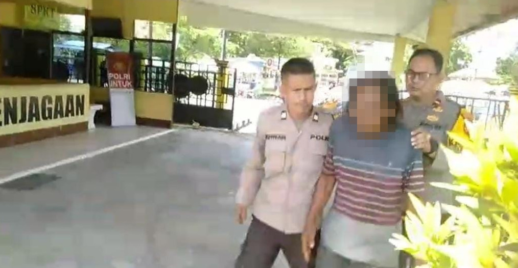 Polisi mengamankan AL (42) yang meresahkan warga dan pengunjung Pasar Baru Ketapang, Kamis (15/5/2025)