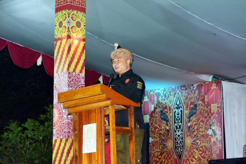 Sekretaris Daerah Kabupaten Ketapang, yang juga Patih Jaga Pati Laman Sembilan Domong Sepuluh Kerajaan Hulu Aik, Alexander Wilyo, menutup Pentas Seni Budaya ke-I Desa Balai Pinang Simpang Hulu, Sabtu (13/7/2024) Malam, di halaman Kantor Camat Simpang Hulu